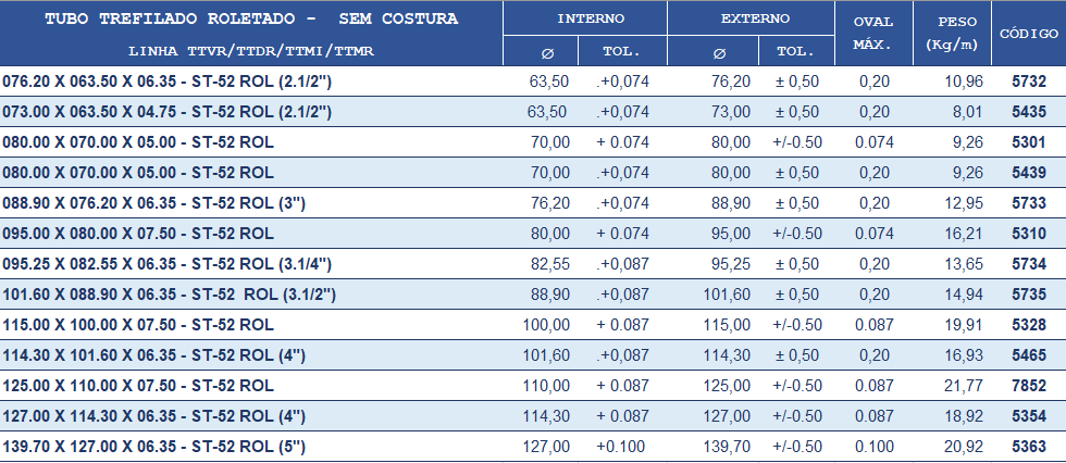 3.0 - Ovalização: Máximo de ovalização permitida: a diferença entre a maior e a menor medida do diâmetro interno em uma mesma secção transversal do tubo, deverá estar contida na tabela TTDS E TTVS.
